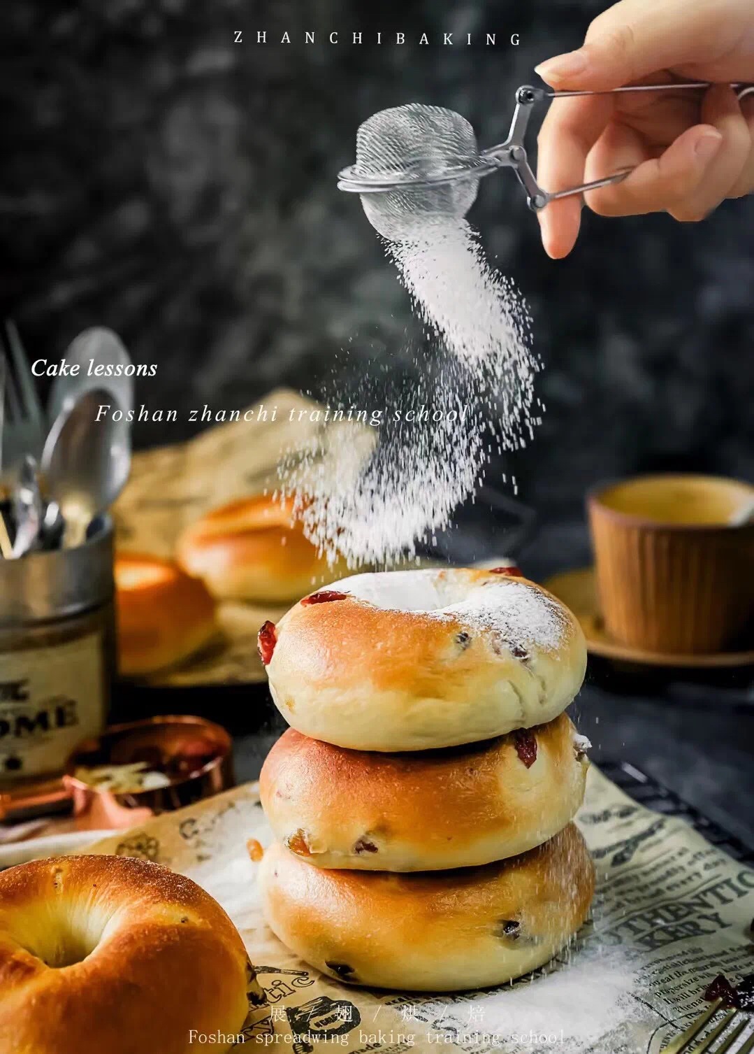 4、發(fā)酵完成后表面篩低粉裝飾。