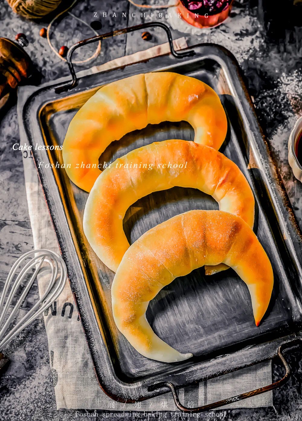 3、桿開成等腰三角形后卷起成牛角狀、32°溫度75%濕度發(fā)酵50-80分鐘最終體積2-2.5倍大。