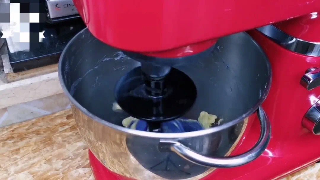 3、面團混合均勻后,把黃油放進(jìn)去,用“中速”揉出手套膜即可