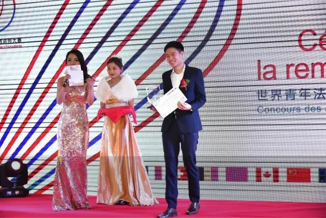 法國駐華大使館法語世界項(xiàng)目官員南博斯先生代領(lǐng)獎(jiǎng)項(xiàng)