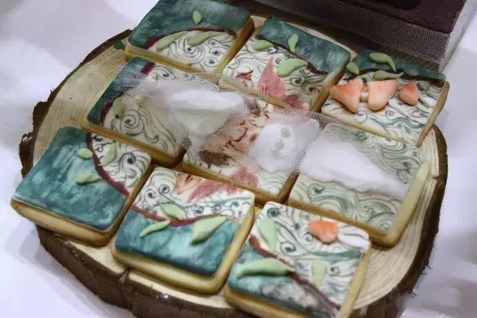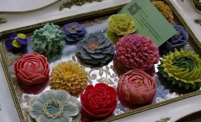 這么漂亮的韓式裱花竟不是用糖霜或者奶油擠出來的,而是用調(diào)過色素的白豆沙擠成的!豆沙?。【尤灰材苡脕頂D花!看來這幾年忙忙乎乎的在這方面上心得少有些孤陋寡聞了!他們做的東西就是精致可愛,比很多的蛋糕不止高了幾個臺階。