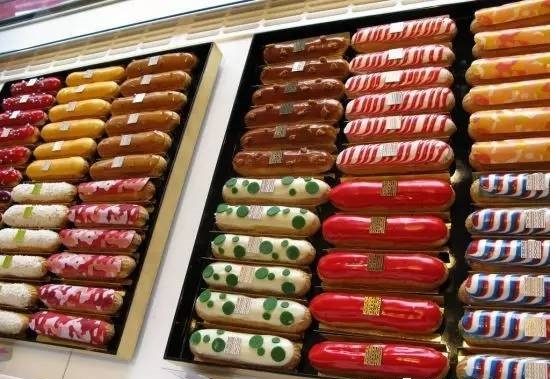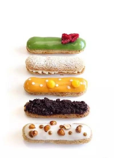 泡芙品類,閃電泡芙們盛裝打扮放在櫥窗里,除了常見(jiàn)的果醬、咖啡、巧克力、糖霜、新鮮水果之外,甚至還有金箔。去吃過(guò)的人都贊口不絕。