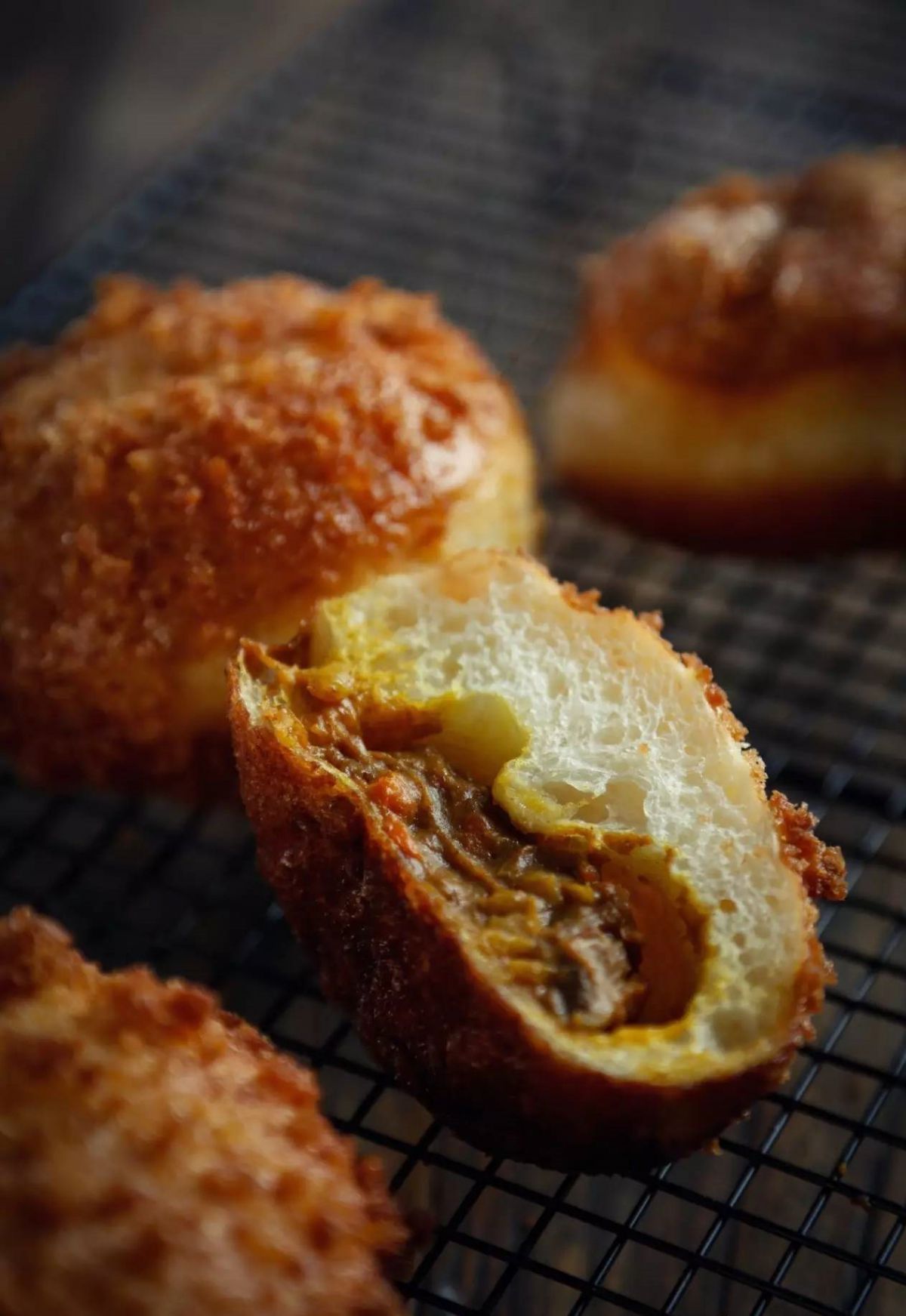 咖喱面包的基礎(chǔ)形狀為梭子形。一般為裹好面包粉炸后食用,是點(diǎn)心面包的一款經(jīng)典代表。內(nèi)部包入的咖喱材料根據(jù)各地各店鋪,會有所不同,有的會辣一些,有的會甜一些??谖丢?dú)特讓人留戀。