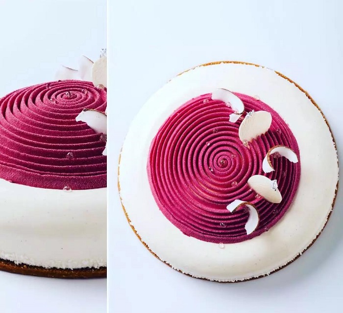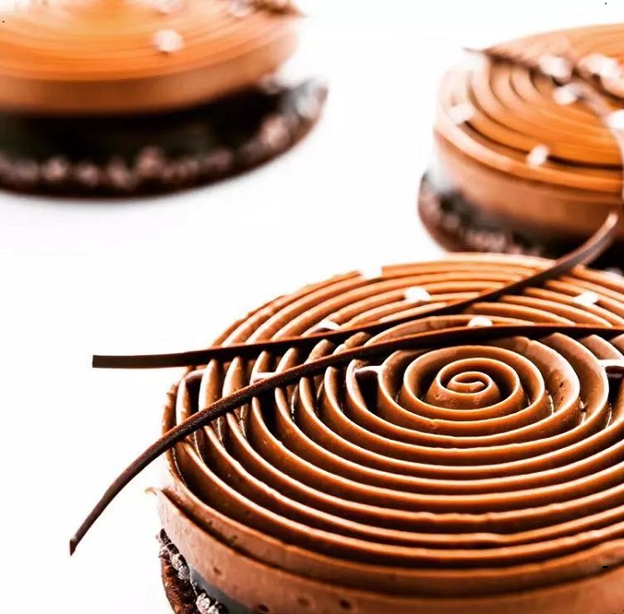 圖片中的那些旋渦一樣的裝飾就是“陀飛輪”(le tourbillon)技術(shù)了。這種裝飾技術(shù)在中國(guó)的甜品制作領(lǐng)域也廣為人知,并且迅速風(fēng)靡全世界,而它的創(chuàng)始人就是我們今天的主角,于2011年獲得法國(guó)甜品及糕點(diǎn)MOF的Yann Brys!