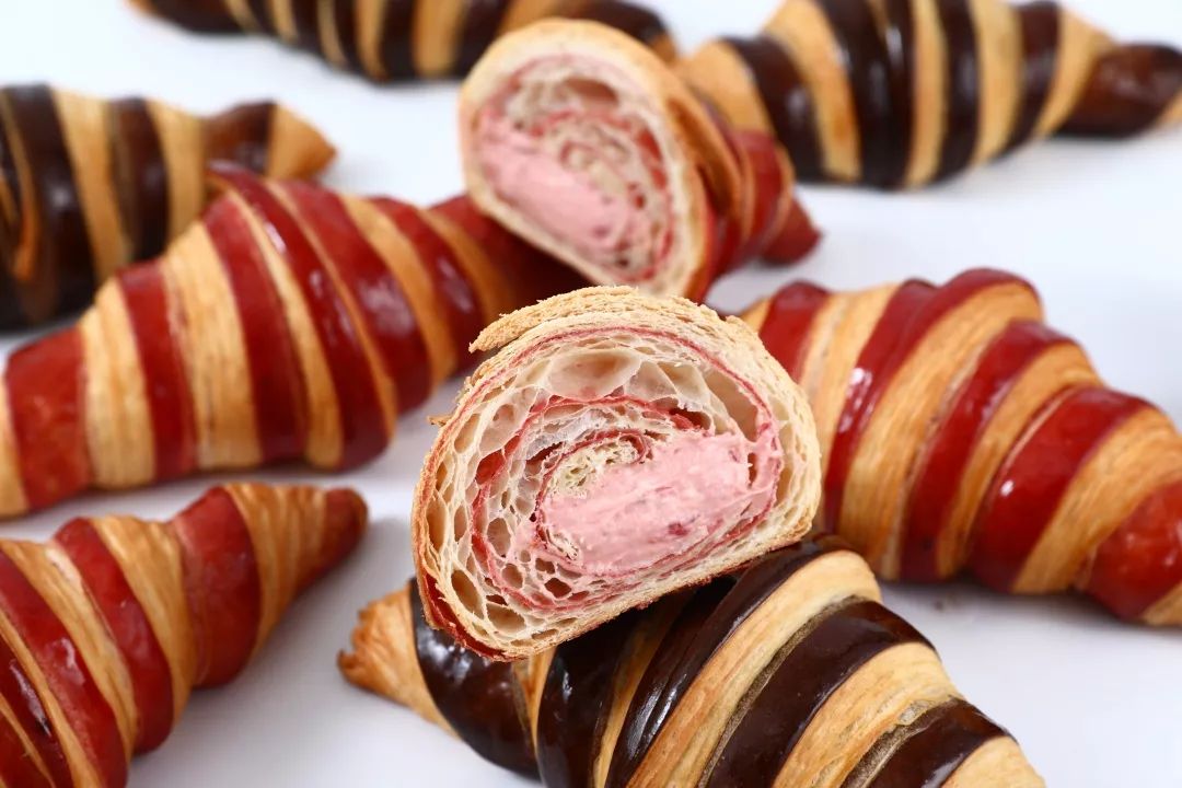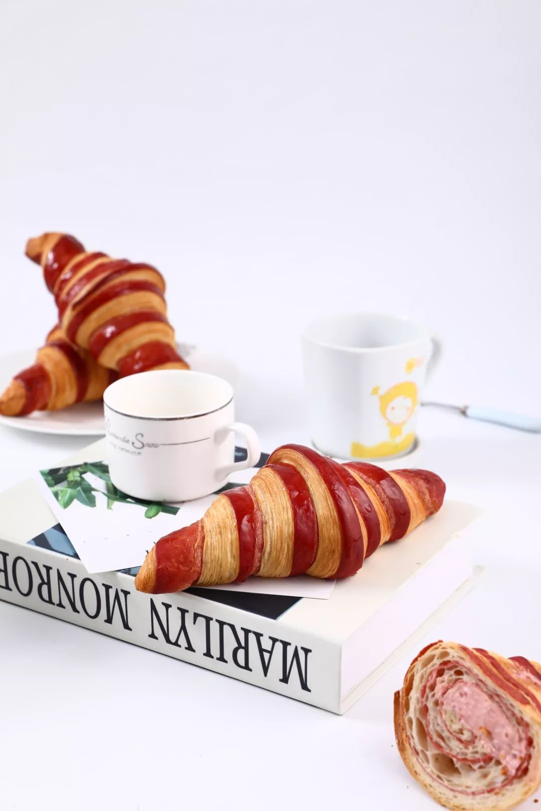 2019年烘焙元年,全網(wǎng)銷售,造型,口味排名第一爆漿雙色羊角包,有著超高人氣的面包
