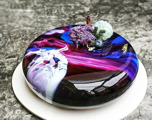 黑色鏡面醬常用于蛋糕/甜品的淋面,淋出來的作品就如同一面鏡子,可以將你的影子清晰的照出來
