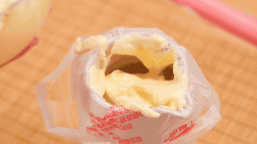 5、混合好的蛋糕糊裝入裱花袋,擠入提前鋪好油紙的烤盤,留空隙