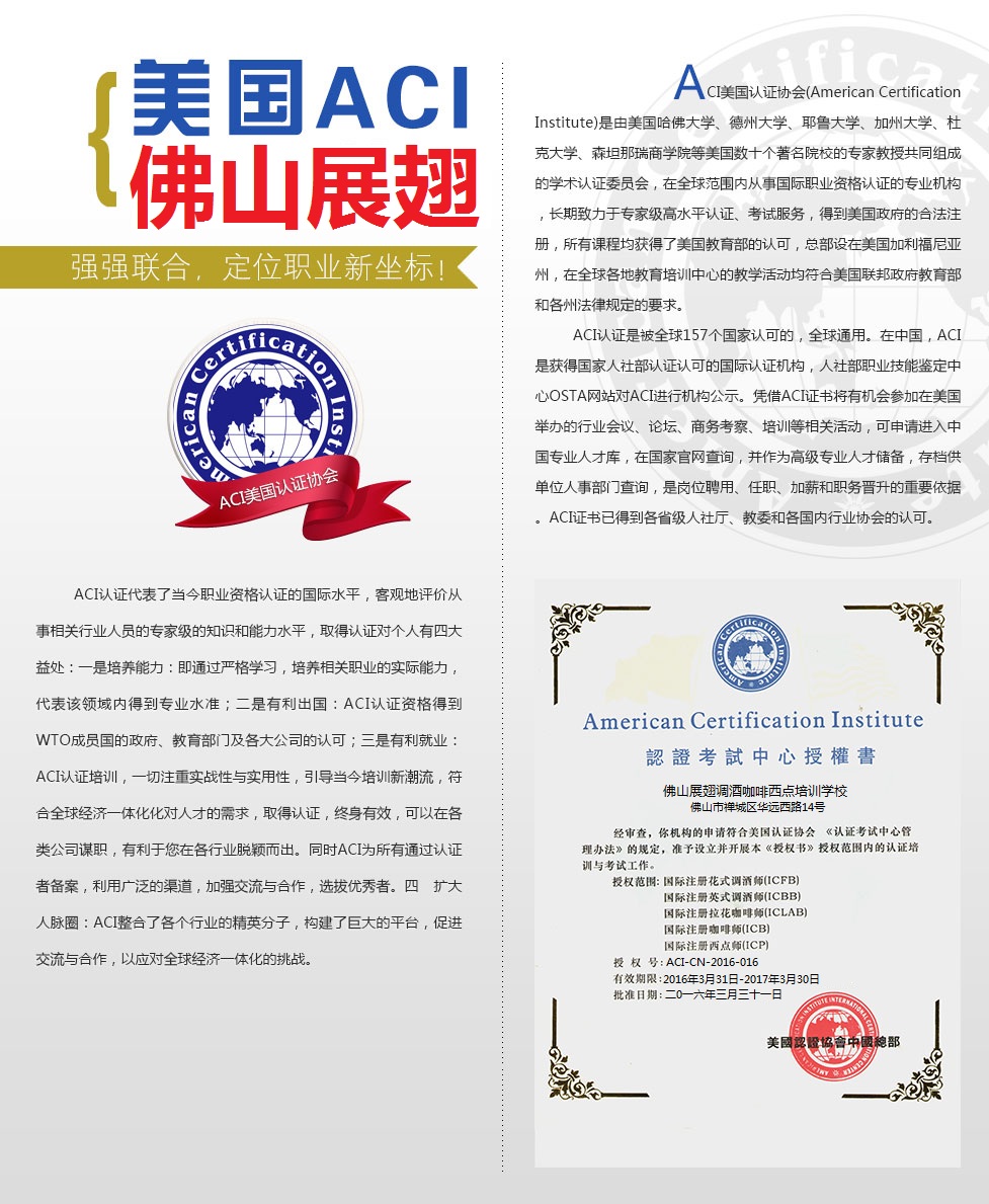 國際ACI權威認證調酒師、咖啡師、西點師職業(yè)證書